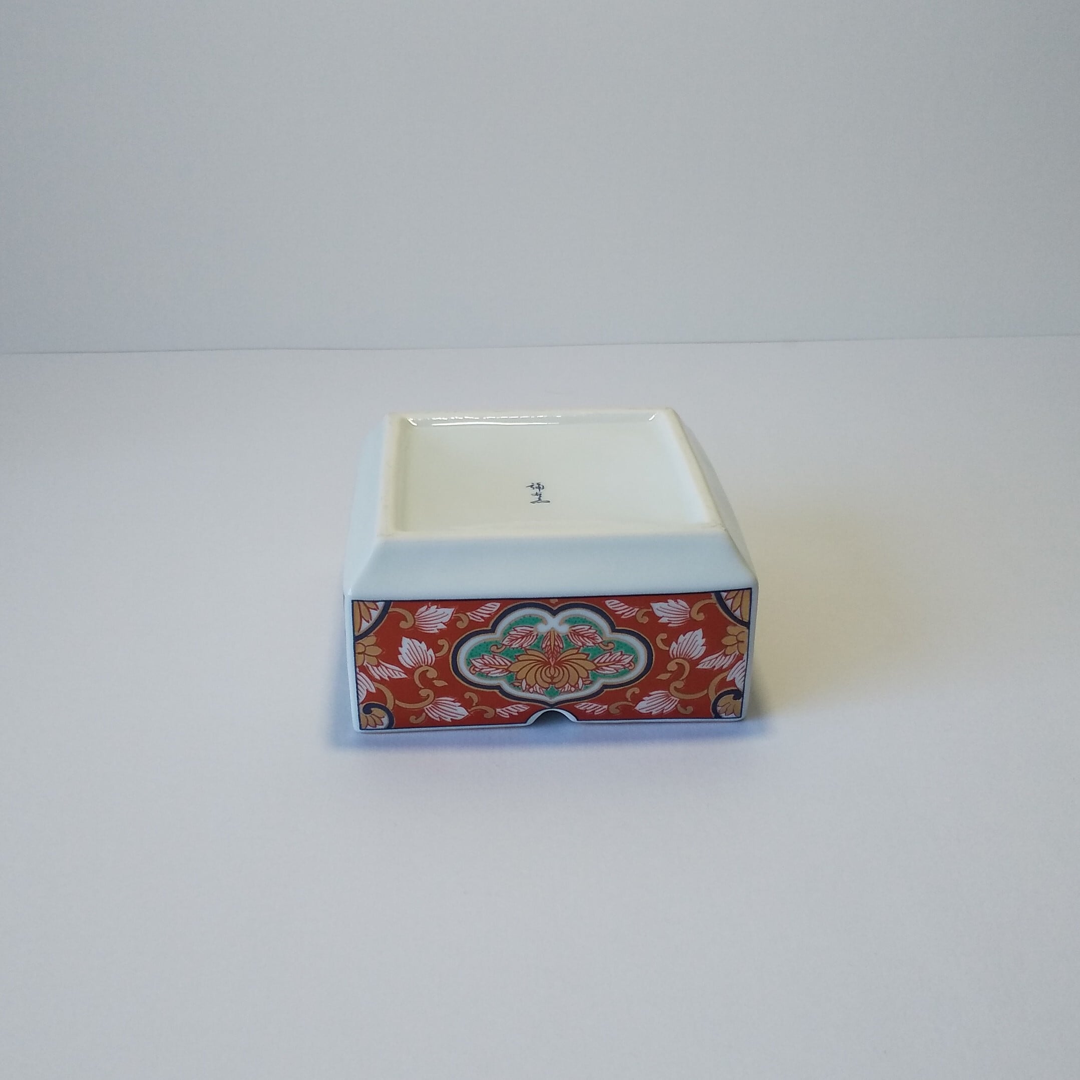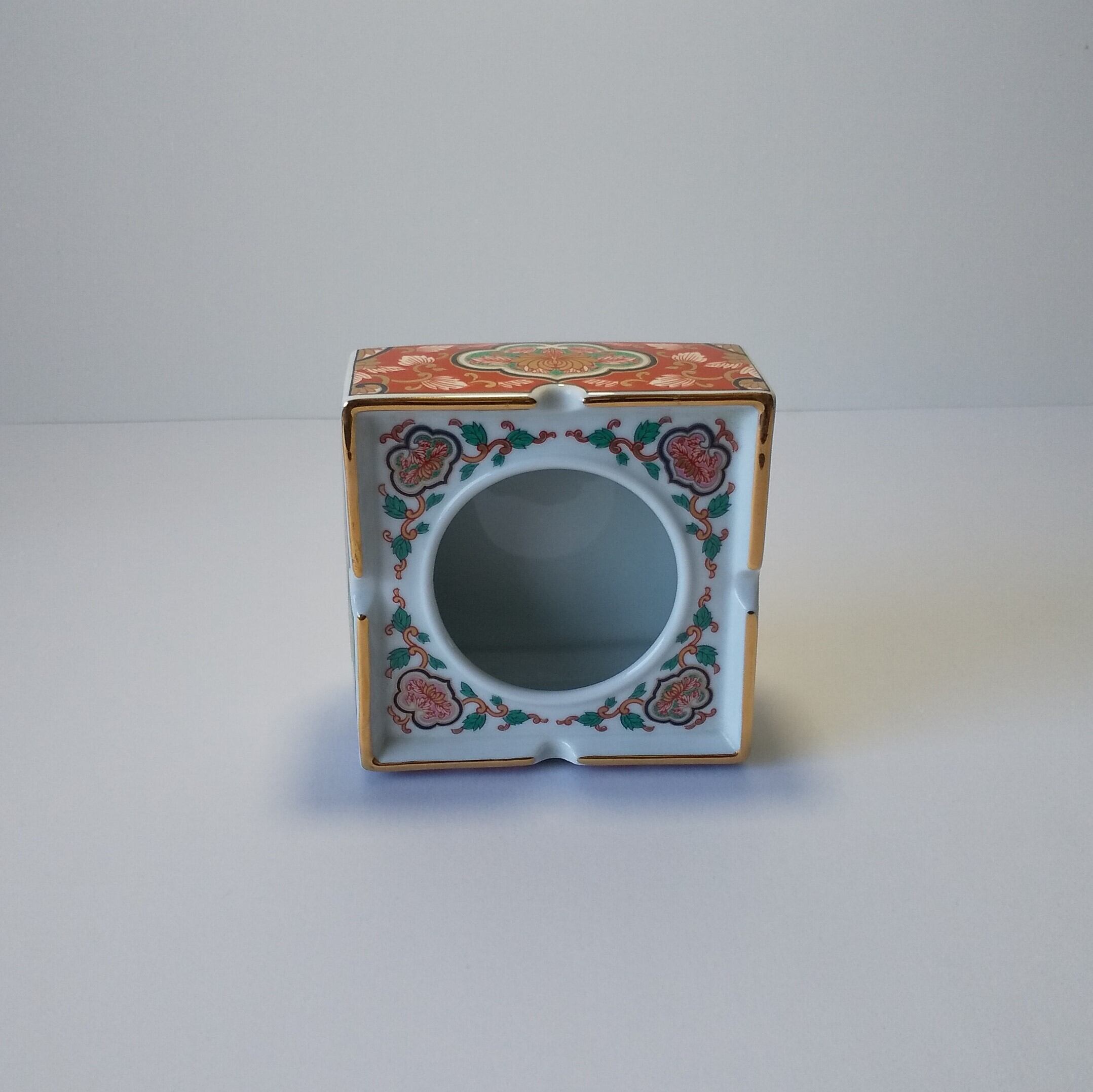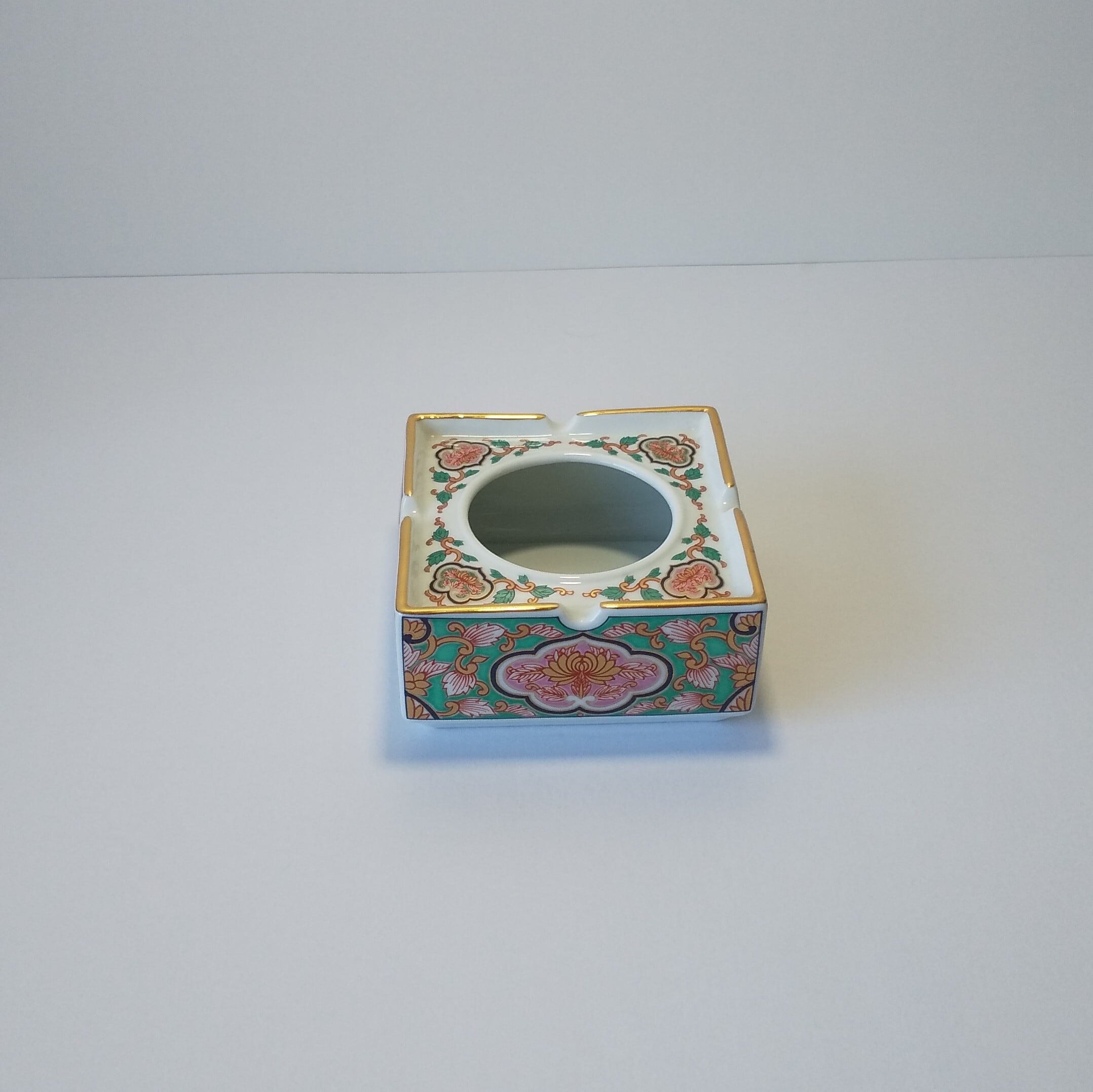 w12xH6㎝ 渕金赤、緑濃鮮やかな赤、緑色の灰皿です応接間等、使用しなくてもインテリア として良いです、