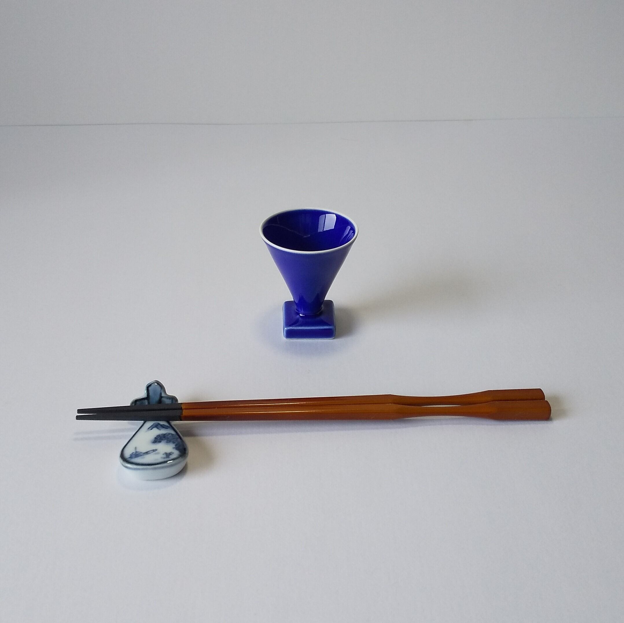 5xH6.3㎝ 高台は角で安定はしています、盃食前酒等種類によつては珍味入れにも ルリ釉が映えます