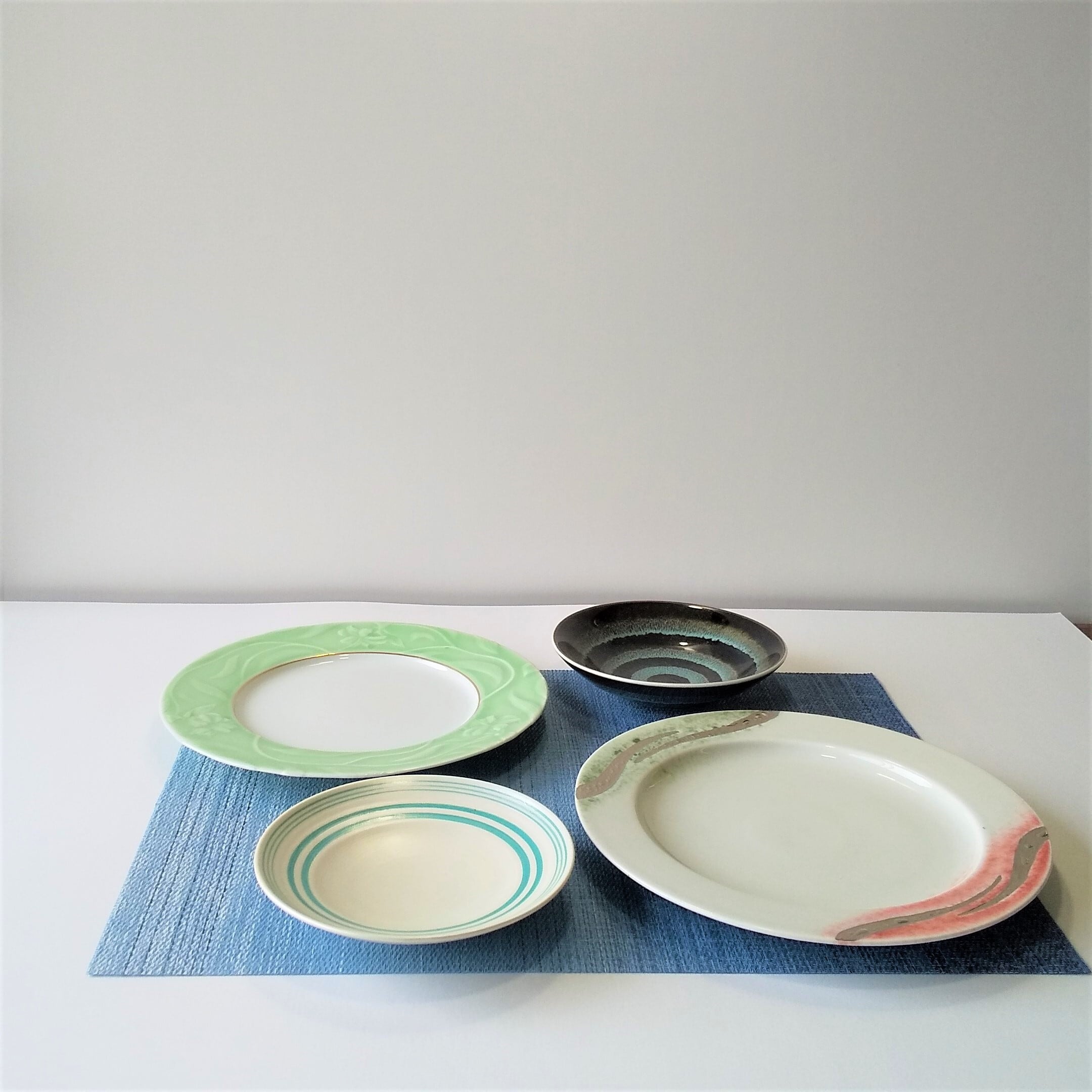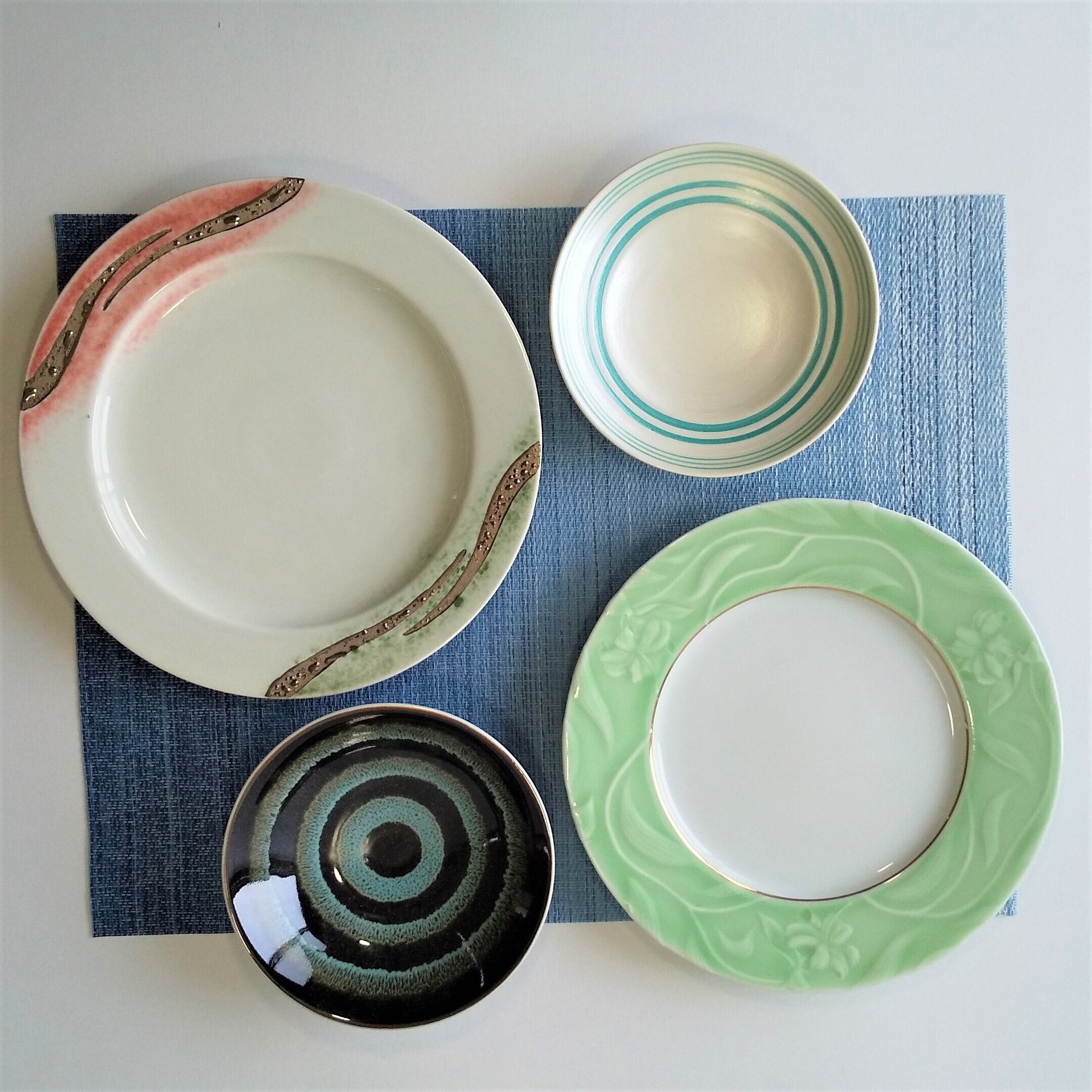有田焼の洋皿。デザインがおしゃれで、和洋使えます。 サラダ,フルーツ取皿等にお気に入りのコーディネートが見つかるかもしれませんね。 このセットでテーブルを彩りたいですね 洋皿プラチナ波w24㎝・緑花w23㎝・サラダ、フルーツ取皿15㎝