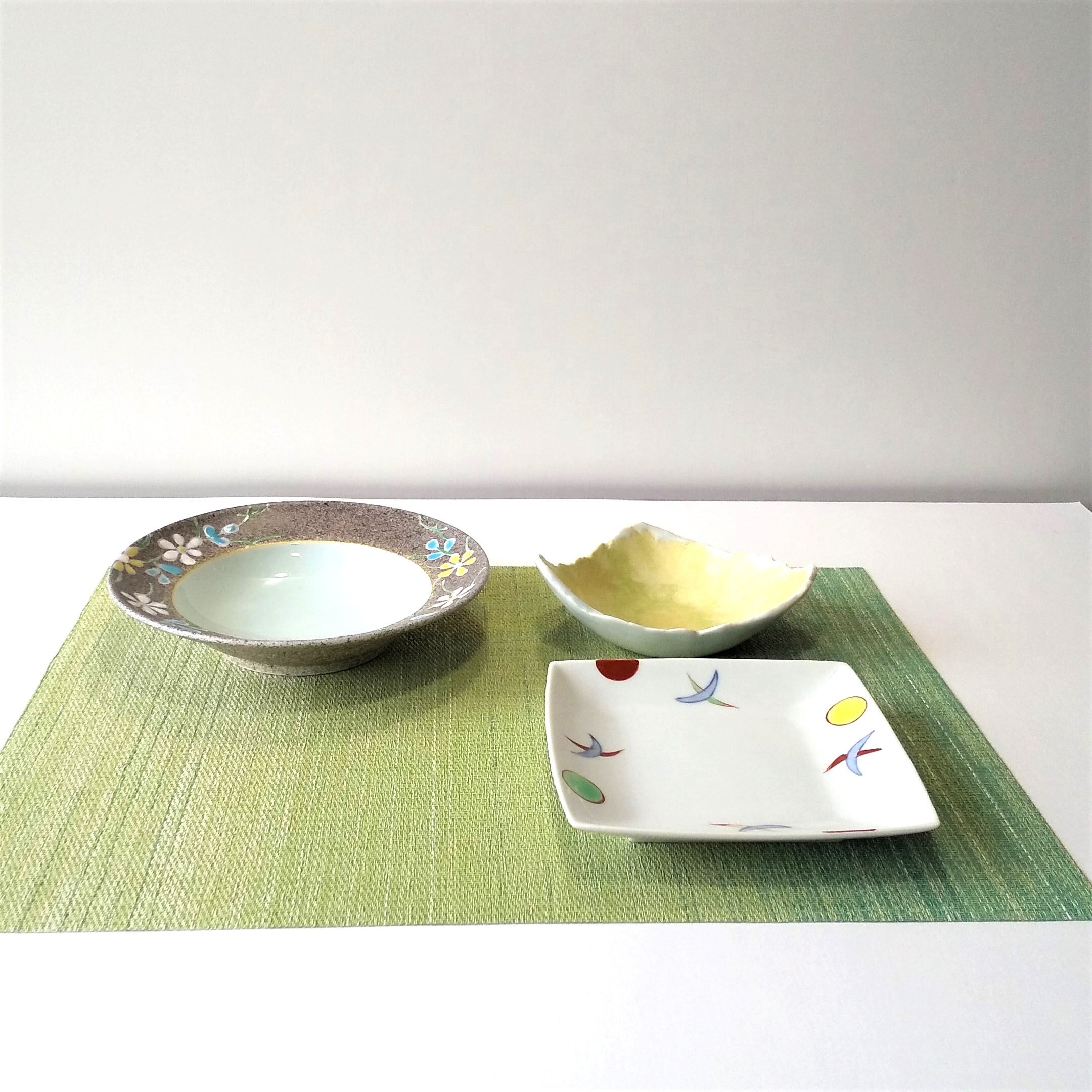少し深めの7寸鉢高級感があります 金彩ちぎり変形小鉢 三色丸紋正角皿