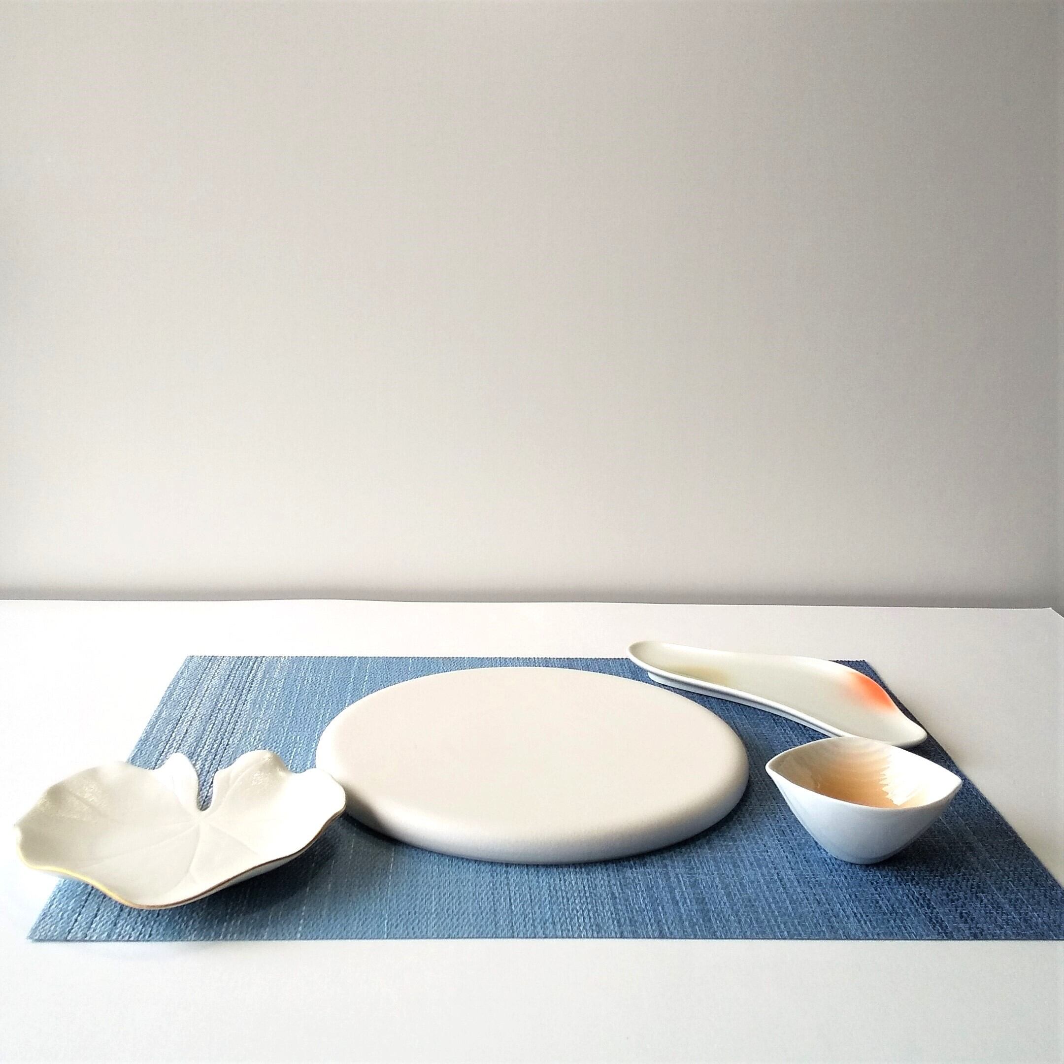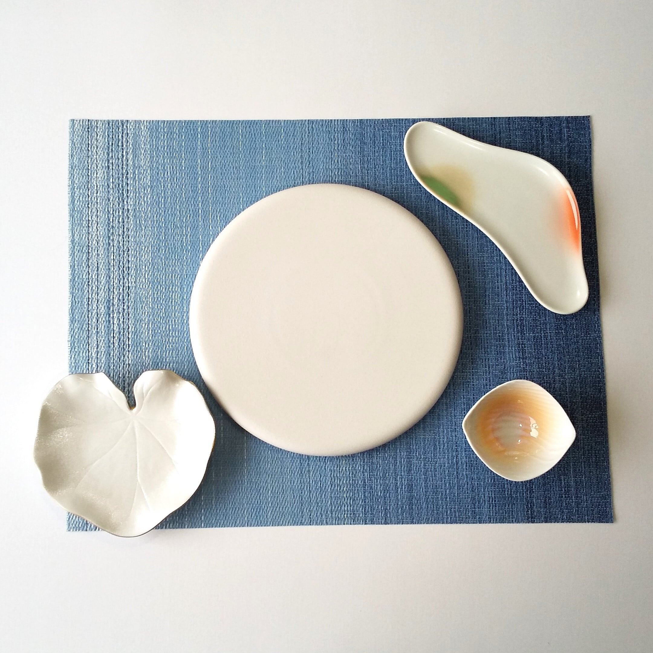 マツト白釉7寸鉢、和洋使用できます、ステーキ、焼物、前菜、刺身等にお使いいただけます シンプルで落ち着いた白です ツワブキ白柚銘々皿、フルーツ、前菜、取り皿等お使いいただけます 二色吹き前菜皿、可愛い前菜を、ちょつと盛る器です オレンジ色小中附、もずく酢、ちょつとの和え物等小さめの小鉢として使用出来ます