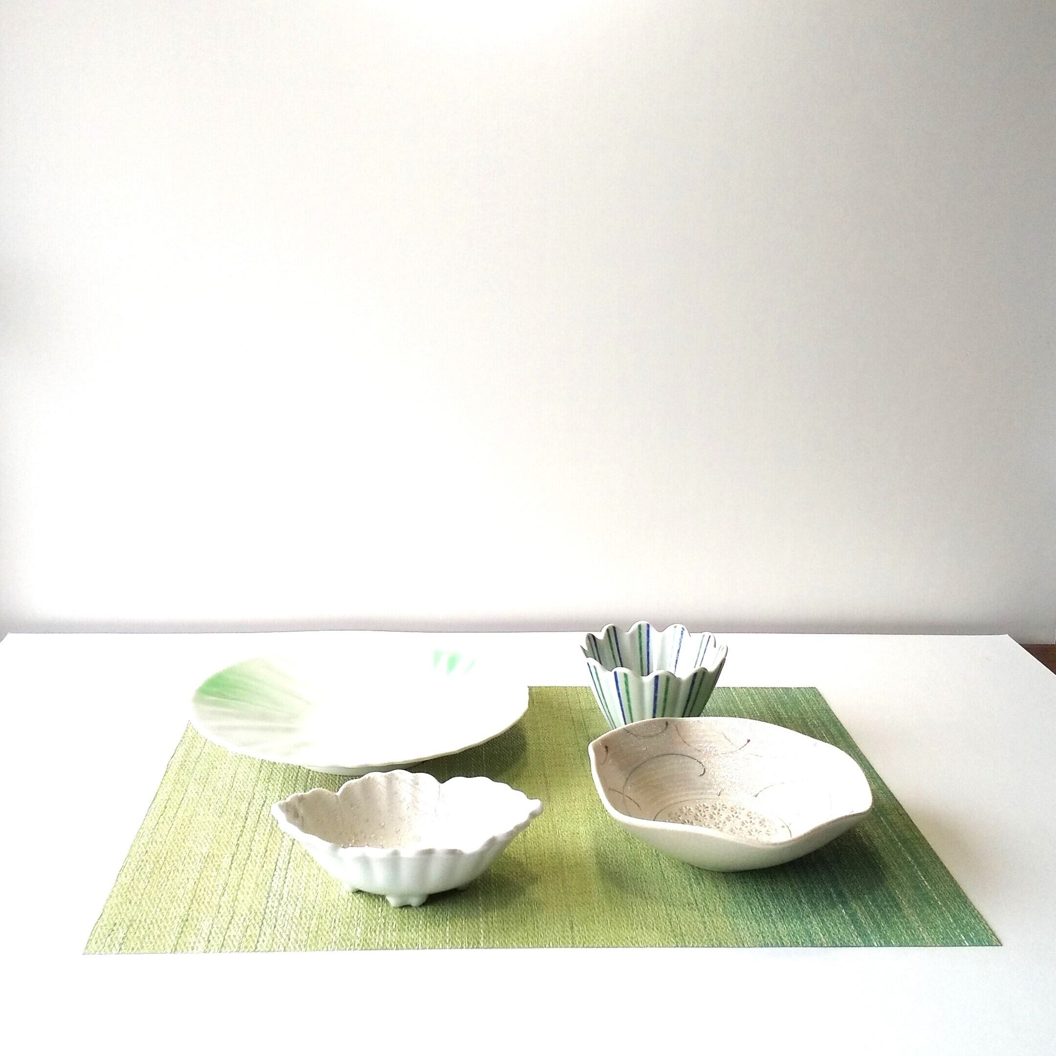 彫グリーン吹き7寸鉢少し深めの多用鉢 ラスター六角鉢煮もの、サラダ、多用鉢として使用出来ます 木葉小鉢、十草小鉢、