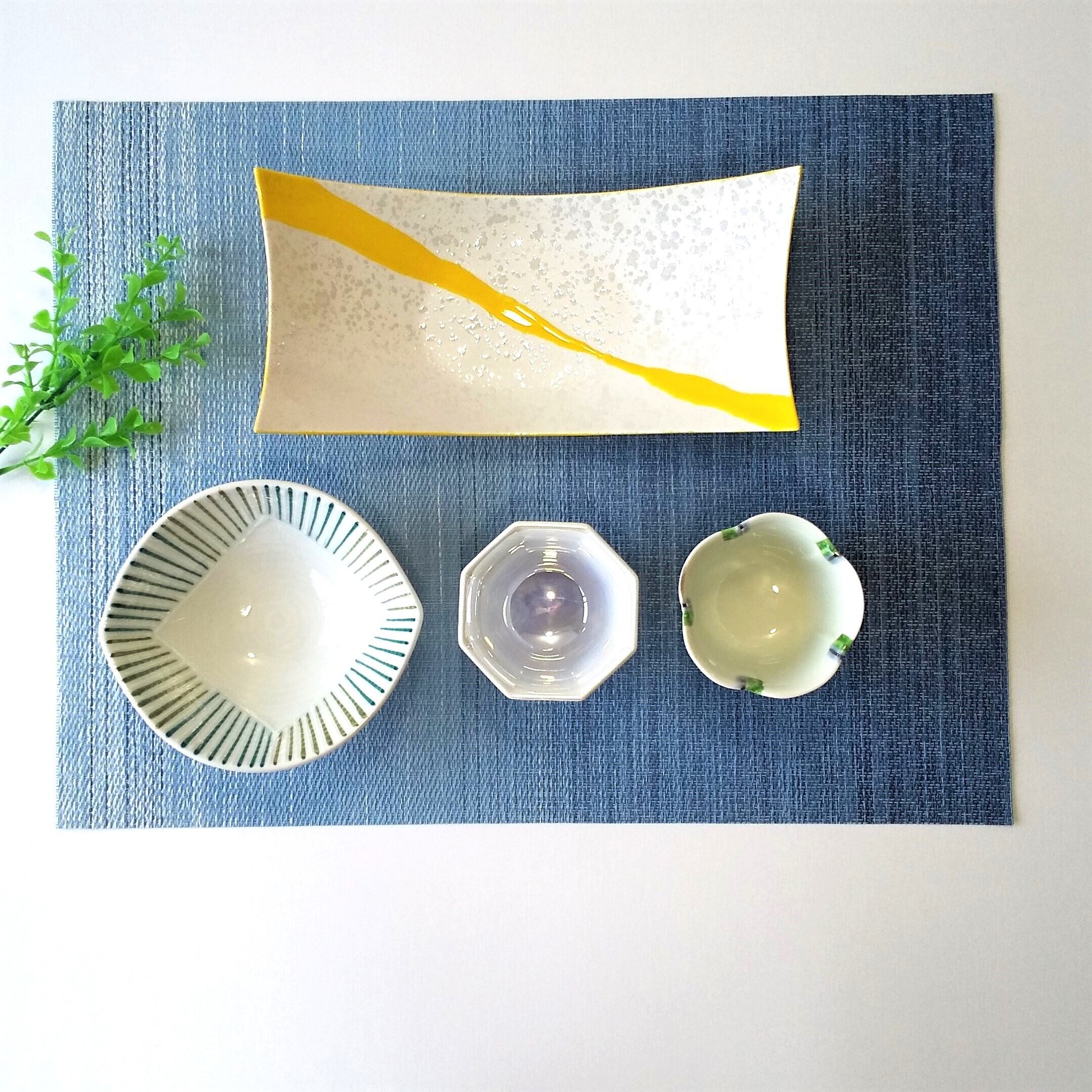 ラスター黄釉向こう付、刺身等にお使いいただけます 十草小鉢、小鉢、サラダ、煮物等にお使いいただけます 小さめのパール八角小鉢 〃 十草小鉢、ちょつとした和え物等にお使いいただけます