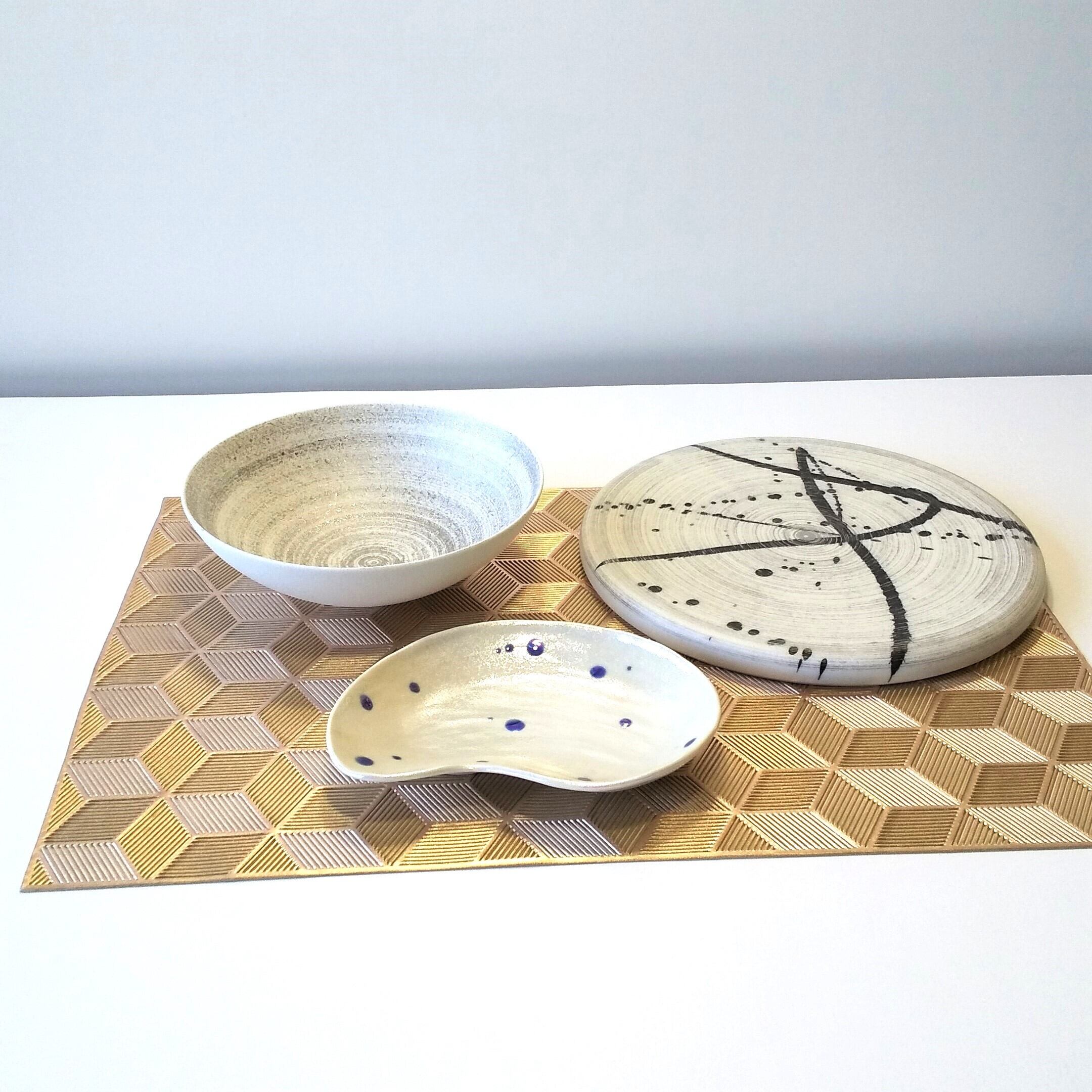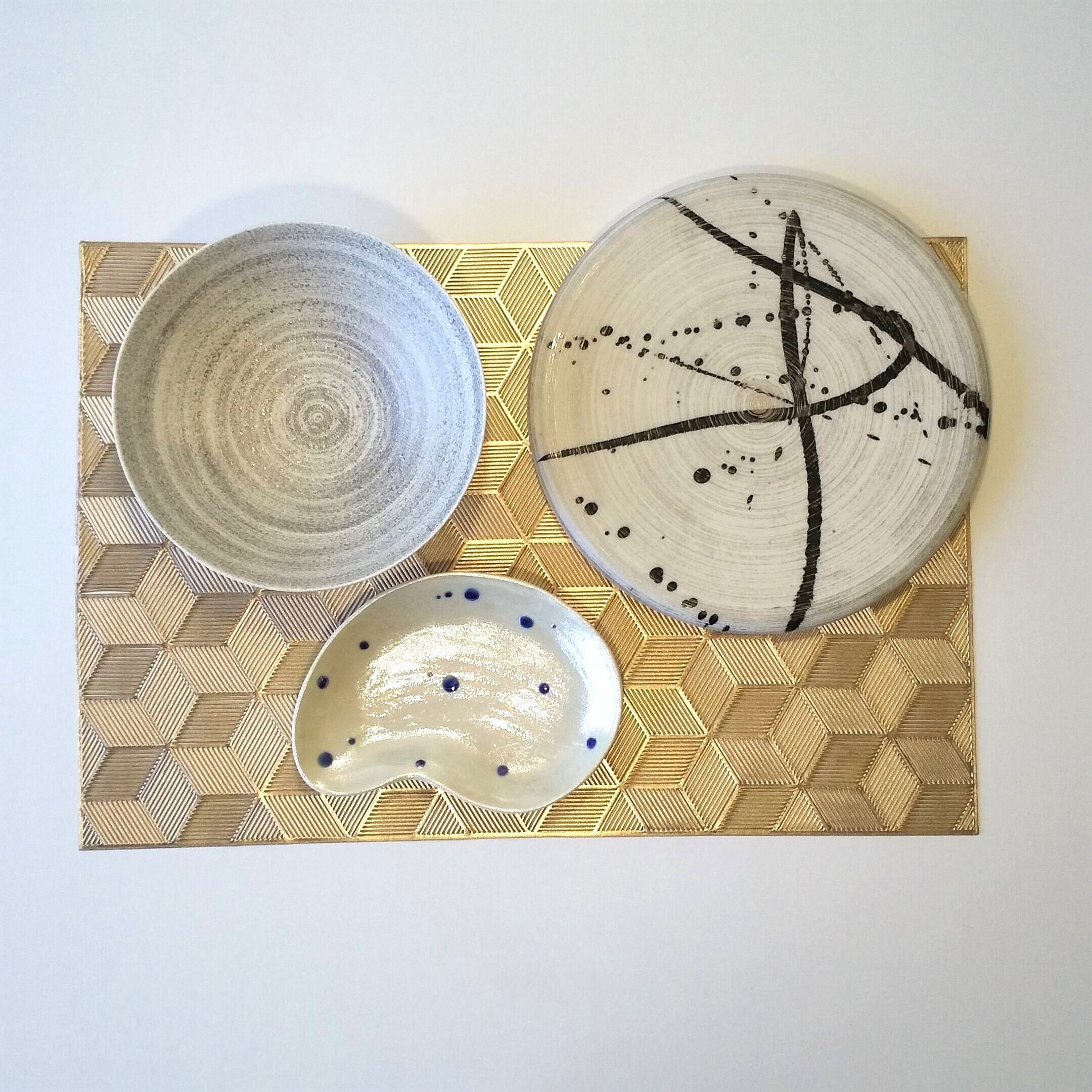 黒墨刷毛7寸陶板形、ステーキ、前菜、刺身等多用途にお使いいただけます グレー刷毛サラダ鉢等にお使いいただけます パールラスター変形フルーツ皿